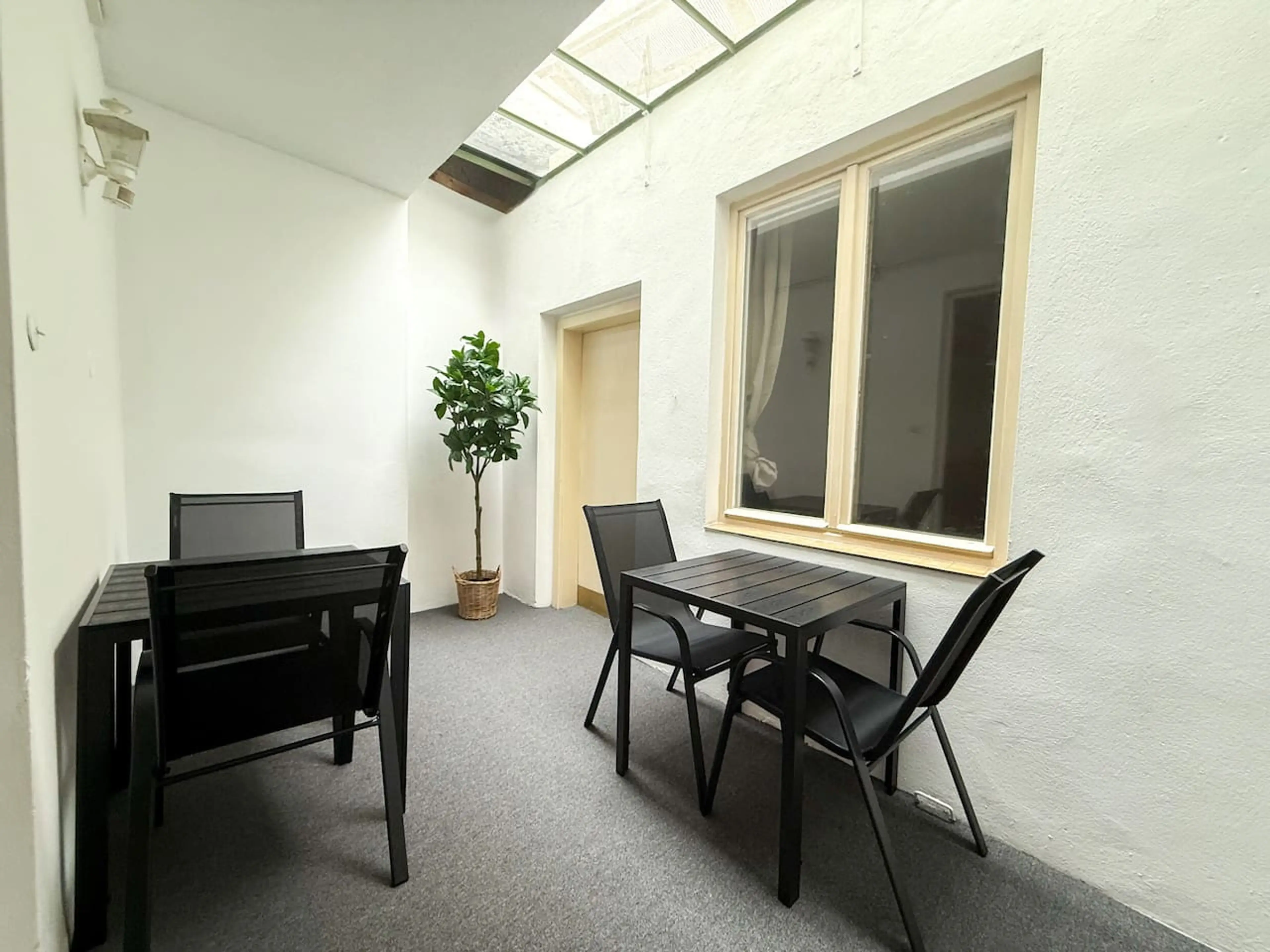 Positive: Location in old town and close to station, few minutes walk to museums, bars and restaurants etc. Large space (room 1) with non-lockable door into area with washing machines and lavatory into lockable room with shower room, then kitchen area ( no cooking possible and no tea/coffee supplied) then area with double bed and chairs. Decoration was minimal, view onto narrow old town street. Access to rooms up stone steps outside and in. Initial contact from owner was good. Room access by key box.